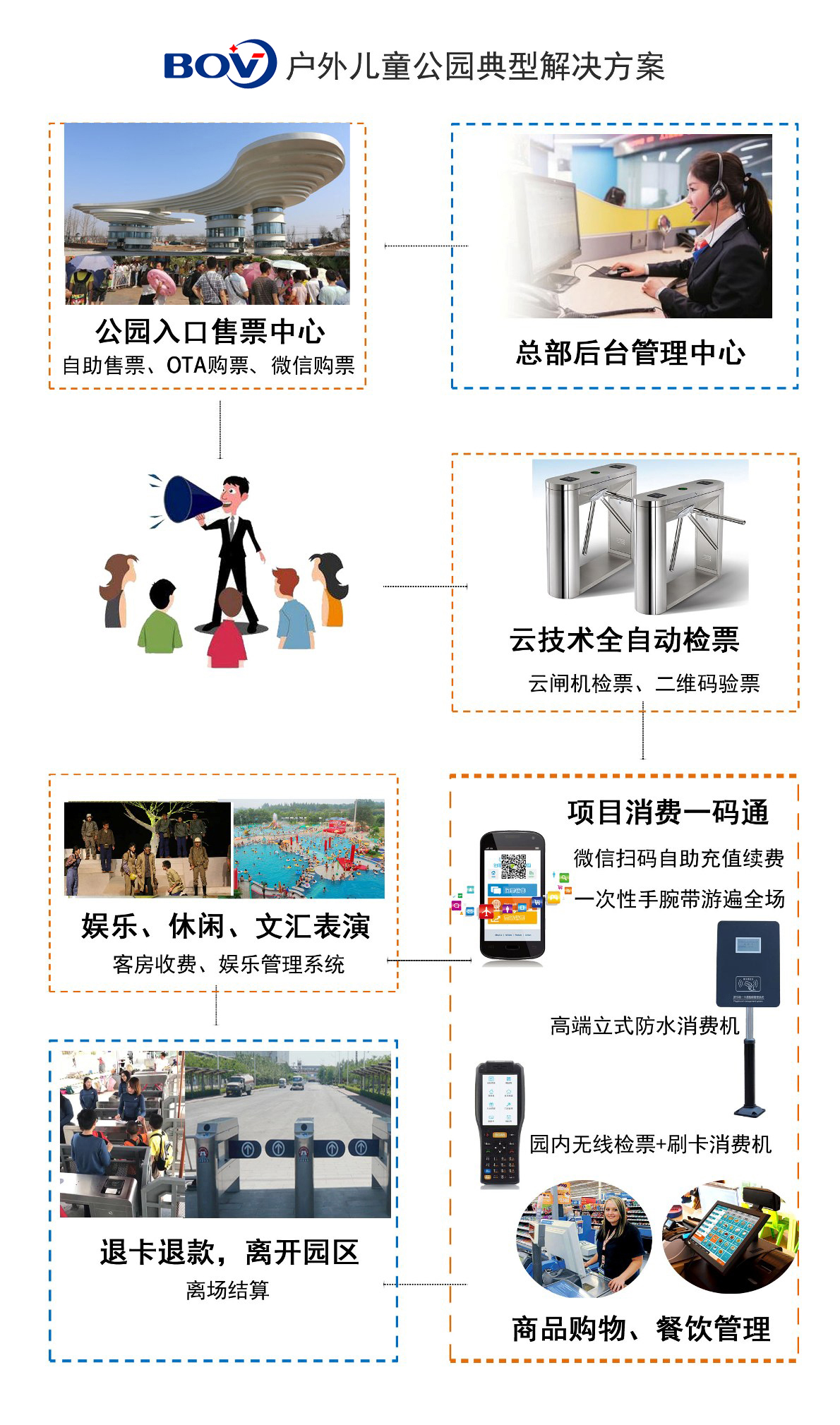 2.適用于大用戶群,具有一個或多個營業(yè)網(wǎng)點(diǎn)(售票亭)的游樂場。